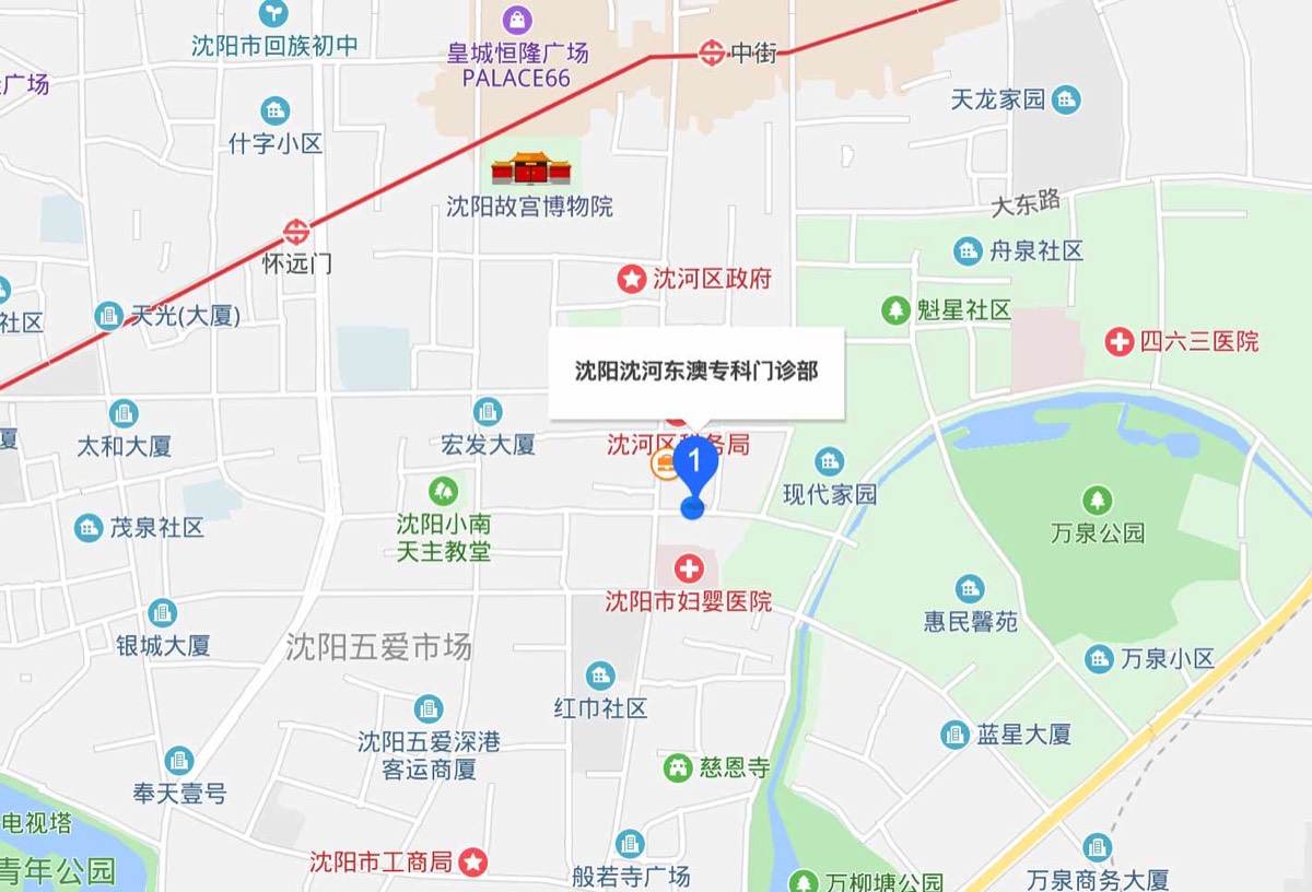 根据自己上车地点,百度地图查找能够达到市妇婴医院、大南门的公交线路,或者直接输入达到地址——沈阳沈河东澳专科门诊部即可获得乘车线路规划。